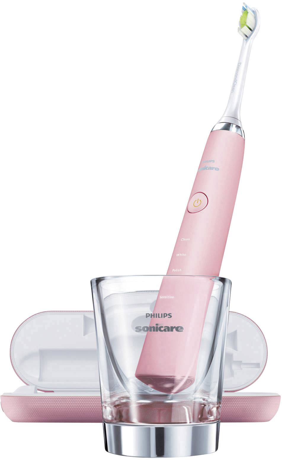Handteil + 2 DiamondClean Bürstenköpfe + 1 Ladeglas + Reiseladeetui + Anleitung.