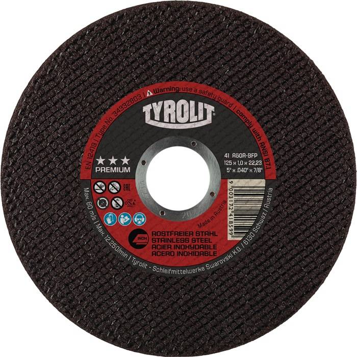 Trennscheibe Premium D125x1mm ger.INOX Bohr.22,23mm TYROLIT