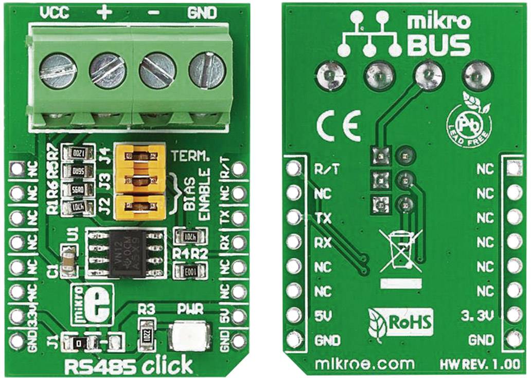 Das RS485 Click™ 3,3 V ist eine Zubehörplatine im mikroBus™ Formfaktor. Der integrierte Differenz-Sender-Empfänger SN65HVD12 ist geeignet für Hochgeschwindigkeitsdatenkommunikation und bidirektionale Datenkommunikation auf Übertragungswegen mit Multipoint Bus. Es wurde entwickelt, um eine ausgeglichene Datenübertragung zu gewährleisten und ist konform mit den EIA-Standards RS-485 und RS-422.