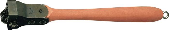 stabiles Griffstück aus Edelholz für festes, bequemes und beidhändiges Zupacken · Stütznasen zur Erleichterung, gleichmäßiges Anlegen der Rolle an die Schleifscheibe · zur Vereinfachung seitlicher Bewegungen, um die gesamte Breite der Schleifscheibe abzurichten · Schutzblech zur Verhinderung sprühender Funken gegen Gesicht und HändeWeitere technische Eigenschaften:· für Schleifscheiben-Ø: 250 - 500mm