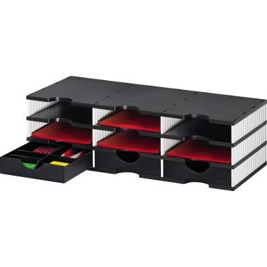 Stabile und flexible Papier- und Dokumentenablage. Vielfältiger Einsatz - verwendbar freistehend auf dem Tisch · Regalen und Schränken oder auch als kleine Drucker- oder Faxstation. Jederzeit erweiterbar durch einfache Steckmontage.