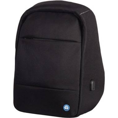 LIGHTPAK® Notebookrucksack RPET Reißverschluss Safepack · USB Ladeport · Trolleyband · 2 Reißverschlussfächer · 3 Einsteckfächer · Notebookfach PET · recycelt schwarz