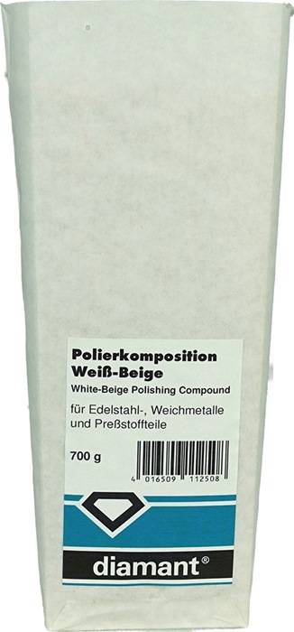 in Blockform · zum Einsatz an Polier, Lappenscheiben und Bürsten · die Blöcke werden an die rotierenden Scheiben gedrückt und erweichen sich an der Oberfläche durch die Reibungswärme, dadurch überträgt sich die Paste auf die ScheibeTyp Weiß-Beige: für Edel-, Weichmetalle, Aluminium, Eisen, BuntmetallWeitere technische Eigenschaften:· Farbe: weiß-beige