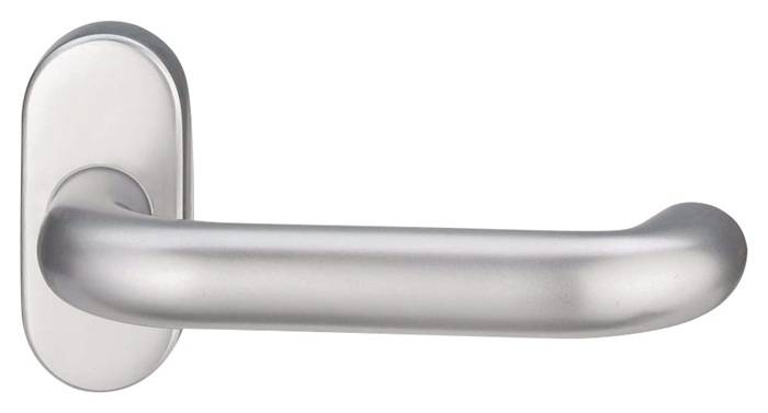 für Rahmentüren · gerade, fest-drehbar auf ovaler Rosette · mit Hochhaltefeder · Rosette Stärke 14,5 mm · Höhe 75 mm · Breite 34 mm · verdeckte Verschraubung · DIN links / rechts · Lieferung ohne Stift und SchraubenWeitere technische Eigenschaften:· Breite: 34mm· Drückerlänge: 142mm· Drückertiefe: 65mm· Stärke: 14,5mm· Anschlagrichtung: DIN links / rechts· Norm: DIN 1906· Lagerung: fest-drehbar· Rosetten-Höhe: 75 mm