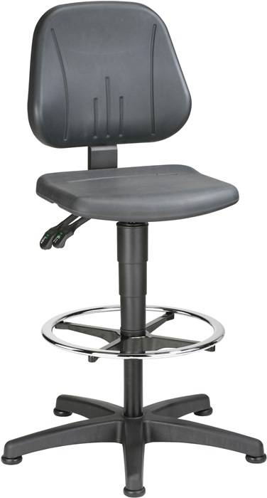 nach DIN 68877 · bedienungsfreundliche Gasfeder-Sitzhöhenverstellung · ergonomisch geformter Sitz und Rückenlehne mit extra großem, robusten Integralschaumpolster beständig gegen leichte Säuren und Laugen, leicht abwaschbar · Rückenlehne pendelnd gelagert mit stufenloser Neigungsverstellung und 10-facher Höhenverstellung · Fünffuß-Untergestell aus Kunststoff, flach auslaufend, kipp- und stolpersicher · Untergestell mit abriebfesten Kunststoff-Bodengleitern und höhenverstellbarem Fußring für erhöhte SitzpositionWeitere technische Eigenschaften:· Modellbezeichnung: 9651-2000