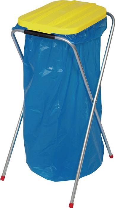 für 70-/120-l-Kunststoffsäcke · robustes, schlagfestes Stahlrohrgestell, Oberfläche galvanisch verzinkt · Kunststoffdeckel eckig mit Klemmring zur SackbefestigungWeitere technische Eigenschaften:· Deckelausführung: Kunststoff