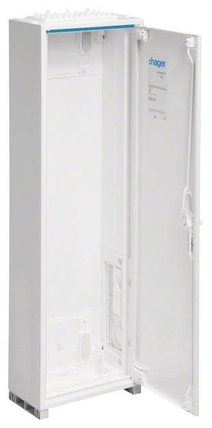 Leerschrank, universZ, 1100x300x160mm, Schutzklasse II, IP44, 84 Platzeinheiten. - Wandaufbauschrank bzw. Wandeinbauschrank mit VDE-Zeichen (Fertigungsüberwachung) nach DIN VDE 0603-1 - Maßnorm nach DIN 43 870 - zur Aufputz- oder Unterputzmontage oder teilversenkter Montage - zum Aufbau einer Zählerplatzanlage bis 355 A, AC 230/400 V /50 Hz - Schutzart IP44, IP54, DIN VDE 0470-1 - Schutzklasse II - Schutzart IP3X hinter der Tür - Luft- und Kriechstrecken nach DIN EN 60664-1 - Bestehend aus Schrank mit Tür; ab 800 mm Breite mit zwei Türen - Korpus und Türen aus pulverbeschichtetem, eingebranntem, stabil profiliertem 1 mm dicken Stahlblech, Innenauskleidung aus Isolierstoff - oben und unten werkzeuglos abnehmbare 2-Komponenten Leitungseinführungen - Rückseite mit Vorprägungen im Kunststoffteil zum Einbau von 2-Komponenten -Leitungseinführungen - seitlich integrierte abnehmbare Sammelschienendurchführungen mit Vorprägungen für Leitungseinführungen - Tür frontbündig mit innen liegenden, justierbaren Scharnieren, wahlweise rechts oder links anschlagbar, Öffnungswinkel =110° - Türverschluss mit Vorreiber und Stangenverschluss als Dreipunktschließung - Türverschluss austauschbar, ersetzbar durch andere Schließungen - Schränke können nebeneinander und übereinander montiert werden - Schränke können nebeneinander und übereinander mechanisch als auch elektrisch verbunden werden