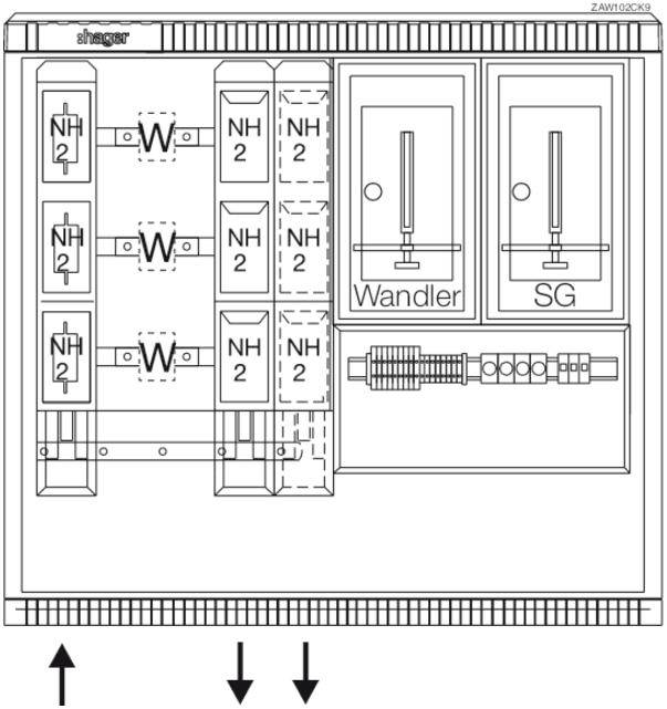 Wandler- und Messschrank, universN, bis 250 A, TN-C Netz, Avacon AG. Bestückte Wandlerschrank nach DIN EN 61439, Schutzart IP 44, aus glasfaserverstärktes Polyester FS 833.5 nach DIN EN 14598 mit Recyclat. Wandlerschrank ist nach den aktuellen technischen Anschlussbedingungen des jeweiligen Energieversorgers bestückt und deckt die jeweiligen TAB-Anforderungen ab. Profiliertes Gehäuse im Rippendesign. Tür mit Öffnungswinkel 180 Grad bei freiem Stand und 90 Grad bei angereihten Gehäusen. Türen sind aushängbar, Türanschlag links oder rechts möglich. Schließung mit Schwenkhebel und Drei-Punkt-Basküleverschluss mit 1 bzw. 2 Profilhalbzylindern. Eingebauter Zylinder unten mit gleichschließender Serie. Ein zweiter Schließzylinder (z. B. aus VNB-Schließanlage) kann oben nach Entfernen des Vierkantverschlusses eingebaut werden. Wenn kein zweiter Profilhalbzylinder eingebaut wird, muss die zweite obere Öffnung mit einem Blindverschluss bestückt werden. Die Belüftung erfolgt über labyrinthartig ausgebildete Lüftungskanäle und ist durch Eindringen von Fremdkörpern stochersicher. Wandlerschränke sind gebaut nach technischer Richtlinie Anschlussschränke im Freien/Anschluss von ortsfesten Schalt- und Steuerschränken und Zähleranschlusssäulen an das Niederspannungsnetz des VNB. Der Einbau besteht aus schutzisolierten Zählerfeldern DIN 43870 (Funktionsflachen) für Zähler und Tarifschaltgerät (TSG). Zählerplätze bzw. TSG-Platz sind vorgerichtet mit einer IP54 Abdeckung. Je nach Ausführung sind Leerplätze als Nachrüstfelder vorgesehen. Hinweis: Zähleranschlussschrank ist mit Eingrabsockel fest zu montieren. Ein Bodenrost ist empfohlen. Rücksprache mit VNB.