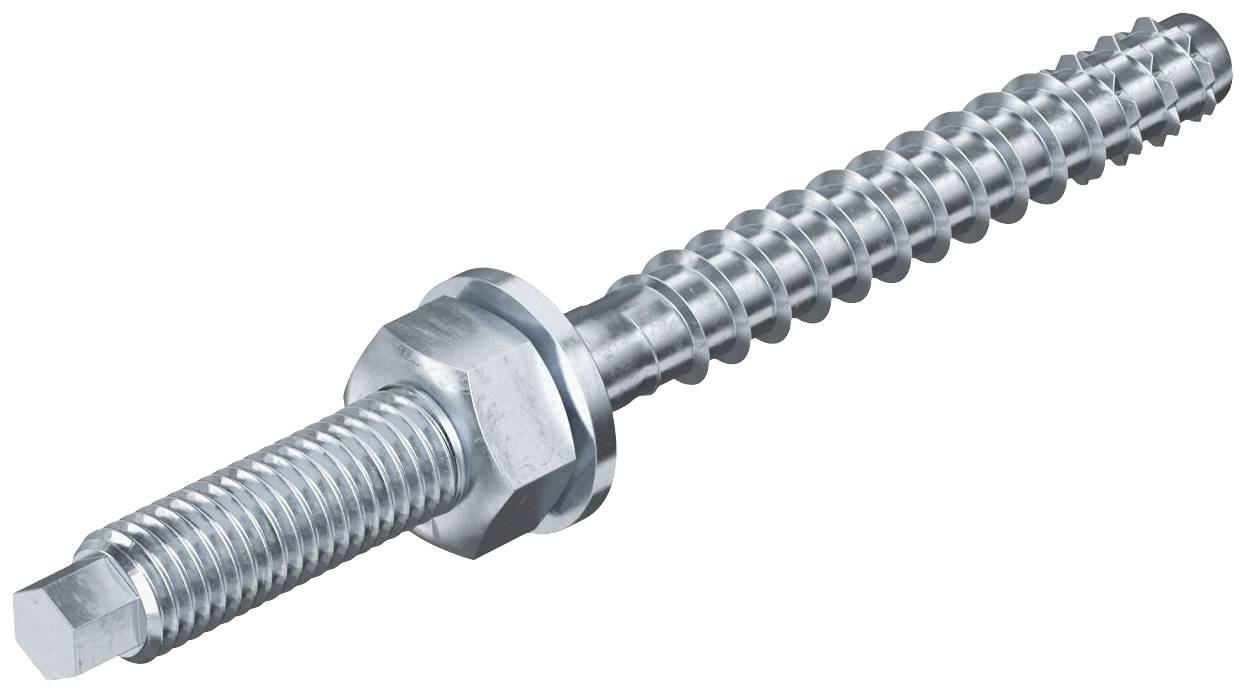 Schraubanker zur direkten Montage ohne Dübel in gerissenem und ungerissenem Beton sowie Mauerwerk. Mit Anschlussgewinde und Unterlegscheibe zur Aufnahme großer Lasten. Geeignet für die Befestigung von Hängestielen und Wandauslegern in Durchsteckmontage. Gemäß EAD geprüftes, CE-gekennzeichnetes Bauprodukt mit Europäisch Technischer Bewertung (ETA) und Anwendbarkeitsnachweis. Tragfähigkeiten unter Brandbelastung bis zur Feuerwiderstandsklasse R120 nachgewiesen.