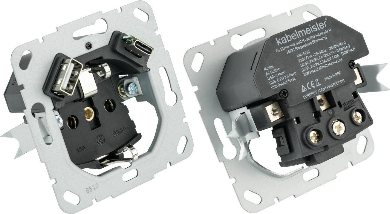 Good Connections Kabelmeister Einbausteckdose 1-fach m. Schnelllader 20W PD3.0 USB - Netzteil - USB Typ C - Schnellladegerät (SE01-1A)