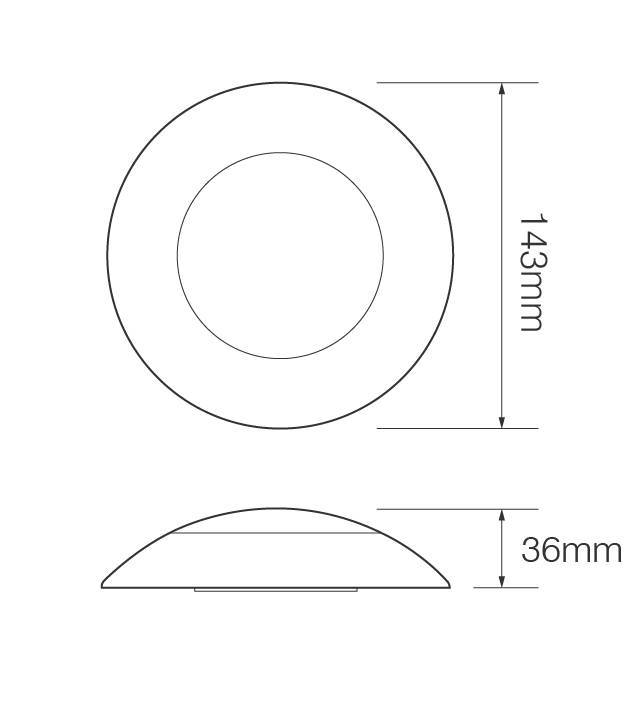 Abmessungen 143 mm Durchmesser x 36 mm Aufbauhöhe
