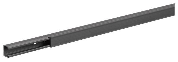 Leitungsführungskanal aus PVC LF 15x15mm graphitschwarz. Elektro-Installationskanal-System Leitungsführungskanal aus Kunststoff nach DIN EN 50085-1 zur Leitungsverlegung. Kanalunterteil/-oberteil mit vorgestanzter Bodenlochung im Abstand von 125 mm, ab Größe 30 x 30 mm mit vormontierten Kupplungen zur einfachen Ausrichtung bei Ein-Mann-Montage und ab Größe 30 x 60 mm vormontierte anstellbaren Rückhalteklammern. Hinweis: Schall- und Brandschutz-Maßnahmen sind fachgerecht auszuführen.