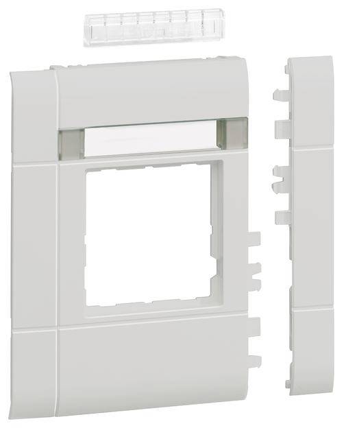 Rahmenblende modular, BRH/A/S, ZS 50, OT 120, hfr, Beschriftungsfeld, lichtgrau. Rahmenblende für Brüstungskanal, modular anreihbar im Kombinationsabstand von 71 mm, Schnittkaschierend zum Kanaloberteil. Zur Aufnahme von Zentralscheiben, Abdeckungen, Wippen oder Adapterrahmen von Installationsschalterprogrammen mit Maß 50 x 50 mm. Angepasst an die Außenkontur des Brüstungskanals zur Reduzierung von Schmutzablagerungen und zur vereinfachten Reinigung. Zur Verwendung mit anreihbaren Gerätedosen für Brüstungskanäle, mit reduzierter Einbautiefe zum bündigen Abschluß mit der Verschlußkontur des Brüstungskanals. Über optionales Zwischenstück kombinierbar mit Steckdosenblende für Brüstungskanal. Integriertes Beschriftungsfeld zur Montage am Installationsgeräte oder der Gerätedose, kompatibel mit 9 mm Beschriftungsbändern.