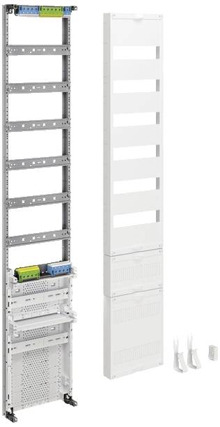 Verteilerfeld,univers Z,H=1350mm,VT 6-reihig,1-feld.,300mm APZ unten u. 1x RFZ. Zählerschranklösung Schrankgehäuse nach DIN VDE 0603/1, Maßnorm DIN 43 870 zur Aufputz, Unterputz oder teilversenkter Montage. Bestehend aus Schrank mit Tür aus pulverbeschichtetem, eingebranntem, stabil profiliertem 1 mm dickem Stahlblech. Innenauskleidung komplett aus Kunststoff. Leitungseinführungen oben und unten durch eingebaute Kunststoffflanschplatten. Rückseitige Vorprägung im Kunststoffteil. Sammelschienendurchführungen als beidseitige seitliche werkzeuglos zu öffnende Flansch im unteren Bereich als Möglichkeit zur Sammelschienenverbindung von verschiedenen Schränken oder in Verbindung mit einem Kabelanschlusskasten und Anschlusssatz. Neben der Durchführung im NAR zusätzlich Öffnungen im Bereich des AAR (für Bauhöhe 1100 und 1400 mm) und RfZ (für Bauhöhe 1100mm). Tür frontbündig mit innenliegenden, justierbaren Scharnieren, wahlweise rechts oder links anschlagbar mit 110° Öffnungswinkel. Türverschluss mit Vorreiber. Türverschluss durch andere Schließungen austauschbar. Schrank nebeneinander und übereinander anflanschbar. Schrankgröße 1- bis 5-feldrig mit 72 bis 540 Platzeinheiten (PLE). Hinweis: Die Hauptleitung ist nach VDE-AR-N 4100:2019-04 von unten oder seitlich in den unteren Anschlussraum des Zählerschrankes einzuführen und dort anzuschließen. Höhe: __ mm (1100mm oder 1400mm) Breite: __ mm Tiefe: 205 / 160 mm, RAL-Farbe: 9010 Schutzart 44, Schutzklasse II Nennstrom des Sammelschienensystems 250 A Ausführung nach VDE-AR-N 4100:2019-04 Zähleranlage für __ Zählerplatz(e). Nach den technischen Anschlussbedingungen (TAB) des VNB __ für: __ Elektronische Haushalts-Zähler (eHZ) oder __ Zähler mit 3-Punktbefestigung (3HZ). __ für Bezugsanlagen mit haushaltsüblichem Verbrauch max. 63 A (10mm²) nach DIN 18015-1 ( __ Wohnungen, __ Allgemein, __ Reserve, __ Wärmepumpe) __ für Dauerstromanwendungen max. 32 A (10 mm²) nach VDE-AR-N 4100:2019-04 (z.B. PV bis 22 KW) __ für Dauerstroman