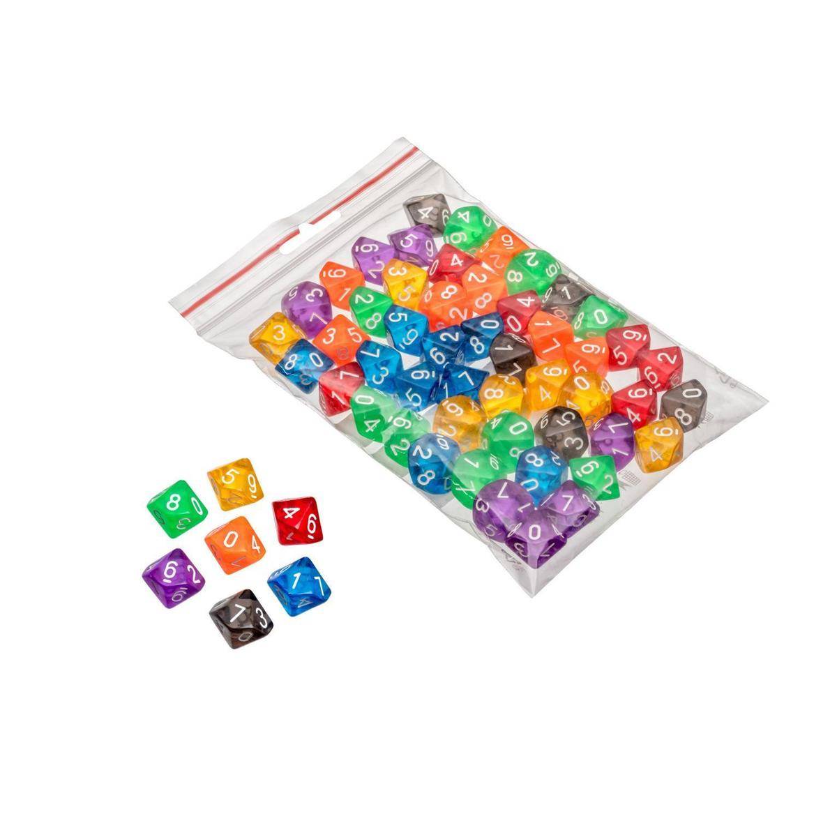 Würfel, 10 seitig, transparent, 50er Beutel