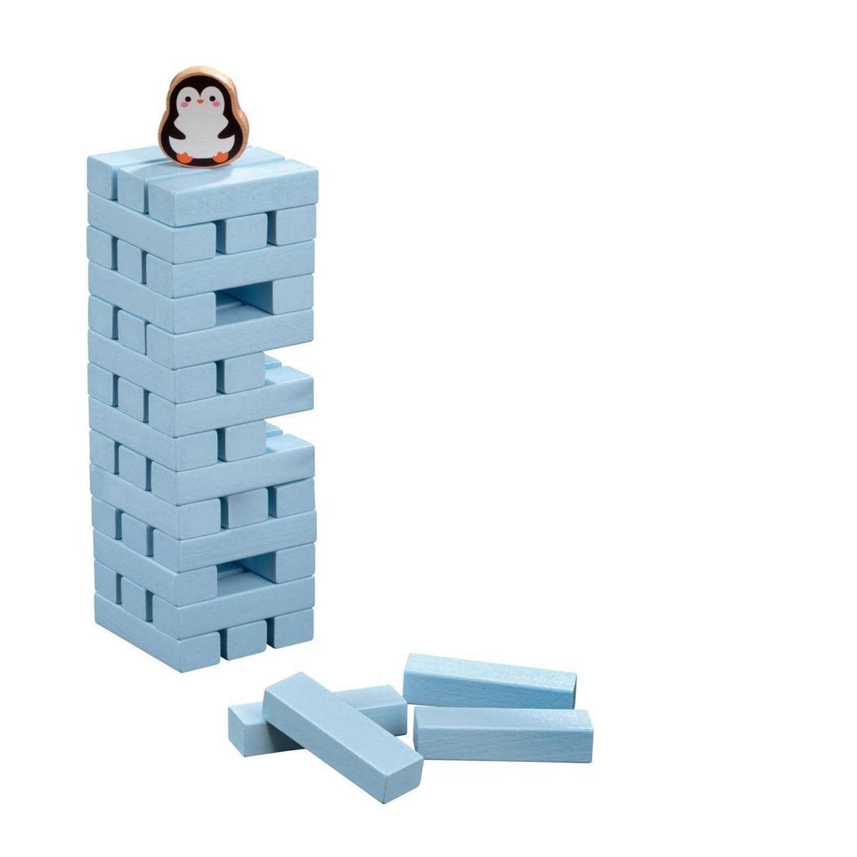 2. Version: Der Eisturm: Die Spieler ziehen nun der Reihe nach mit der Hand einen Eisblock aus dem Turm. Auch hier gilt: Fällt der Pinguin, ist das Spiel vorbei und der verursachende Spieler verliert das Spiel.