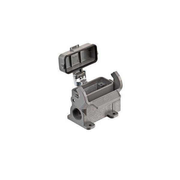 Sockelgehäuse, mit Kunststoffkappe, Baugröße: 10 A, hohe Bauform, Längsbügel, Polycarbonat (PC), Edelstahl, seitlicher Kabeleingang, 2x M20, Werkstoff Gehäuse: Aluminium-Druckguss, pulverbeschichtet, RAL 7037 (staubgrau)