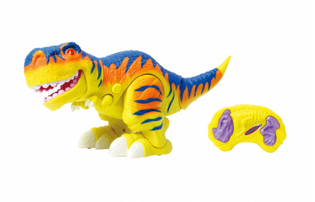 Stampf, stampf und die Erde bebt. Wer kennt sie nicht die Szenen aus den großen Dinosaurier-Filmen aus Hollywood. Jetzt gibt es von Jamara einen ferngesteuerten Dino für das heimische Wohnzimmer. Überraschen Sie ihre Mitbewohner wenn der Bruni mit funkelnden LED-Augen und realistischem Dinosauriergebrüll um die Ecke läuft. Ein Ferngesteuerter Spaß für die Kleinen und Großen Dino-Fans. - Lauffunktion mit Stampfgeräuschen - Rot leuchtende Augen - Realistisches Dinosauriergebrüll - Kopf bewegt sich - Demofunktion