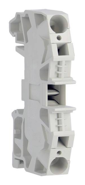 Durchgangsklemme-Phase 10mm², 800V-57A, Stecktechnik. Reihenklemme für Verteiler/Schrank auf einer DIN-Hutschiene.
