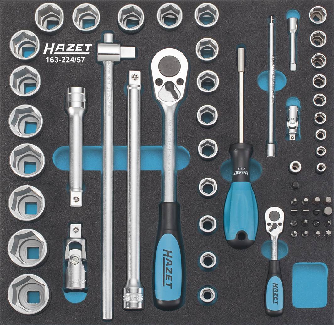 Steckschlüssel- / Schraubendreher-Satz· Safety-Insert-System - Alle Werkzeuge rüttelfest eingebettet - Fehlendes Werkzeug wird sofort bemerkt. · Reinigungsmöglichkeit der Einlagen (Unter fließendem Wasser abbürsten, trocknen lassen - fertig!). · Passend für alle HAZET-Werkzeugwagen Assistent mit Schubfächern. Für die Werkzeugwagen Assistent 173, 179 und 180 empfehlen wir zusätzlich Kunststoff-Einlage 173-36/5 oder Weichschaum-Einlagen 163-522x40 bzw. 163-522x50. · 57teiliger Satz,. · In Safety-Insert-System, 2-Komponenten-Weichschaum-Einlage 2/3 (344 x 342 mm). · Inhalt:. 810 SPC-6,3. 850-5,5 6 7 8 9 10 11 12 13. 863 P 867-2 868 869. 900-10 11 12 13 14 15 16 17 18 19 20 21 22 23 24 26 27 28 30 32. 915 916 SP 917-5 918-10 920. 2204-3 4 5 6 8. 2208-6 9 10. 2215-PH 1 PH 3 2216-PZ 1 PZ 2. 2223-T 15 T 20 T 25 T 30. 2250-1 2304.
