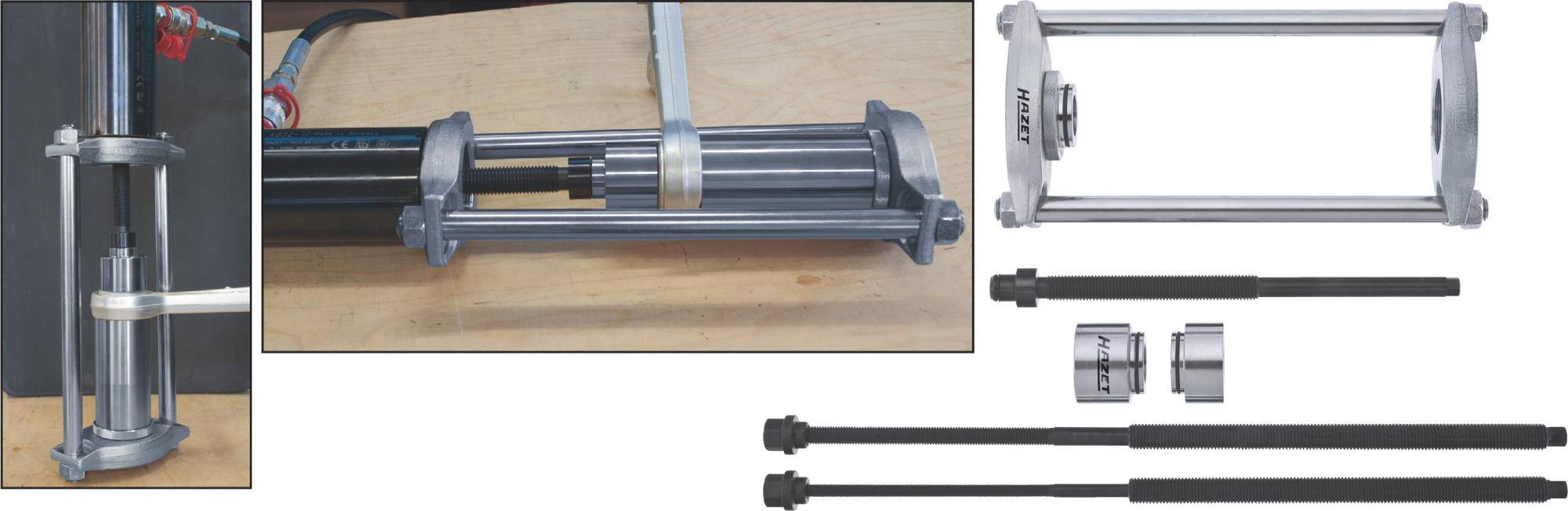 • Ergänzungs-Satz, 6teilig zur hydraulischen Betätigung des Universal-Silent- und Gelenklagersatzes 4926-1/19 in Verbindung mit HAZET Hohlkolben-Zylinder 4932-17. • Zum Aus- und Einpressen von Buchsen und Traggelenken. Made In Germany.