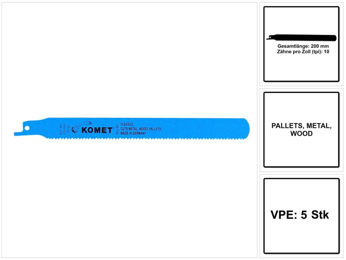 - 5x Komet Säbelsägeblatt PALLETS 200mm 10tpi ( 501.361 ) HSS-Bi-Metall
