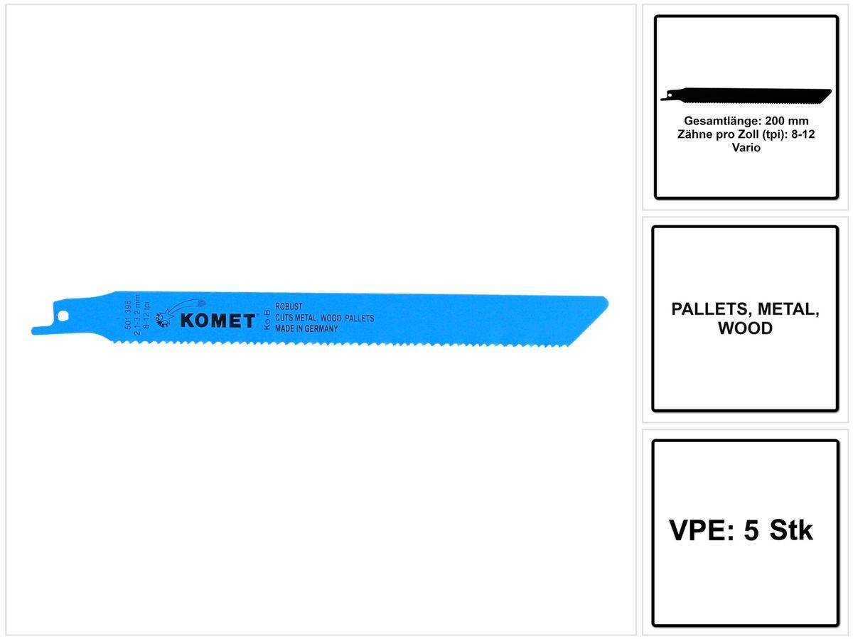 - 5x Komet Säbelsägeblatt PALLETS 200 mm 8-12tpi ( 501.396 ) HSS-Bi-Metall Vario