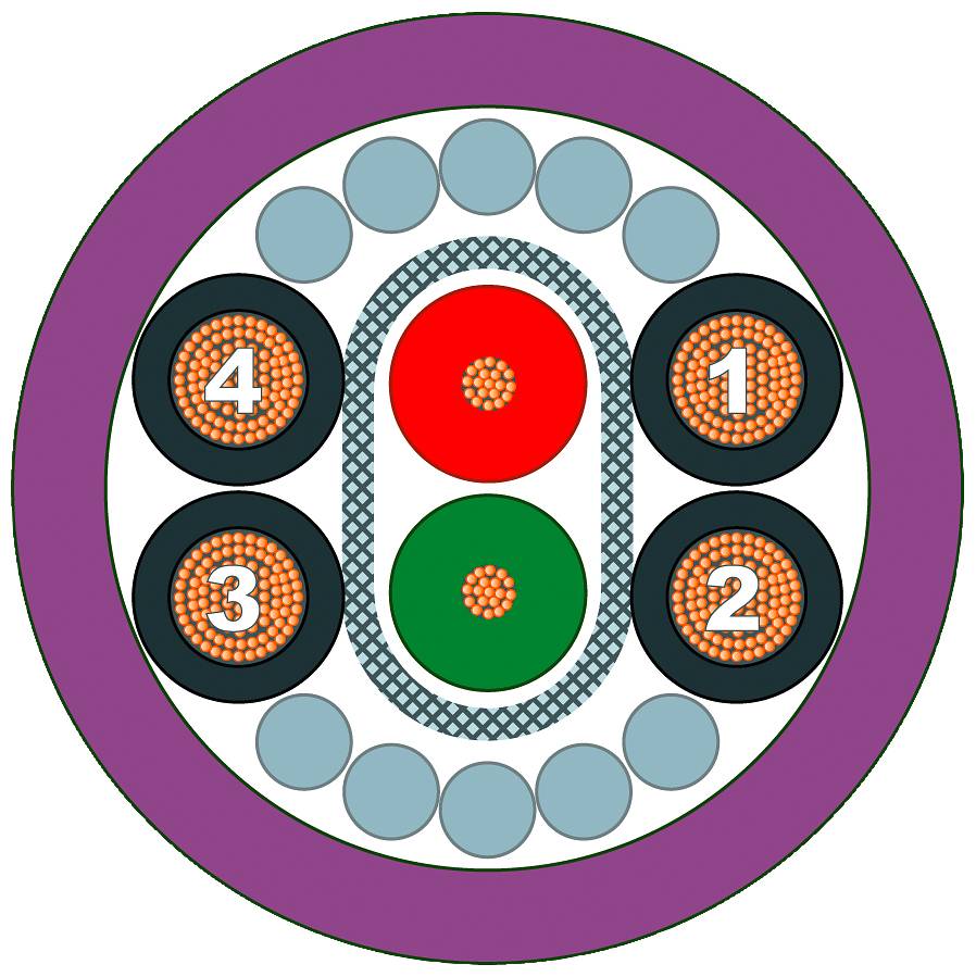 PROFIBUS ECOFAST Hybrid Cable GP, 2xCU 0,64mm, 4x Cu 1,5mm2, Leitung konfektioniert mit ECOFAST- Stecker und-Buchse, schleppfähig, Länge 10m. SIMATIC NETPROFIBUS ECOFAST Hybrid Cable GP
