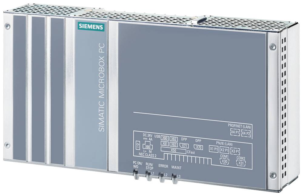 SIMATIC IPC427E (Microbox PC), HD Grafik onboard, 4x USB V3.0 (High Current), PCIE (optional), Core i5-6442EQ, 3x Gbit Ethernet (IE/PN), Hutschienenmontage, 16 GB, 2x RS232/485, ohne PCIe, ohne Betriebssystem, ohne wechselbaren Massenspeicher, 480 GB Solid-State Drive SATA, Industrial Edge-SINUMERIK, 24V DC Industriestromversorgung und TPM SIMATIC IPC427E der leistungsstarke embedded IPC - wartungsfrei und flexibel konfigurierbar. Der SIMATIC IPC427E bietet Maschinen-, Anlagen- und Schaltschrankbauern eine leistungsstarke, kompakte und einschaltfertige PC-Plattform für den maschinen- und prozessnahen Einsatz bzw. Einsatz im industriellen Umfeld. Das Einsatzspektrum reicht vom voll in TIA eingebundenen Automatisierungsrechner mit z. B. Software Controller CPU1500S, über die C/C++-basierte Automatisierungslösung mit z. B. VxWorks bis zu „standalone Anwendungen im allgemeinen IT-Einsatz. Für Software-Produkte, die Windows 7 Ultimate voraussetzen, wird die Kombination Windows 7 Ultimate vorinstalliert auf Festplatte oder SSD angeboten. Der SIMATIC IPC427E hat das Kennzeichen für den Einsatz im Industriebereich und im Wohn-, Geschäfts- und Gewerbebereich und kann deshalb auch in der Gebäudeautomatisierung oder in öffentlichen Einrichtungen zum Einsatz kommen. Das Gerät verfügt auch über die wichtigsten Schiffbauzulassungen. Durch sein lüfterloses Konzept und den Einsatz von SIMATIC PC CFast-Speichern oder SSDs kommt er vollkommen ohne drehende Teile aus und erhöht so die Systemverfügbarkeit. Die SIMATIC PC können in Verbindung mit WinCC SCADA oder WinCC (Advanced, Professional) als SIMATIC HMI Packages mit einem Preisvorteil bestellt werden.