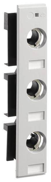 Reitersicherungsunterteil D02 E18 63A 3polig 60mm Sammelschiene Anschlussklemme. Reitersicherungsunterteil für drei D02 Sicherungen, für Sammelschienensystem-Abstand 60 mm, Höhe 20 und 30 mm wie im System univers. Sicherungsbefestigung mit Schraubkappe. In max. 63 A. Sammelschienenrastierung für 5 mm dicke Kupferschienen, ausbrechbar für 10 mm Dicke. Beschriftungsmöglichkeit am Gerät integriert. Rahmenklemme bis 16 mm² feindrähtig und bis 25 mm² ein - und mehrdrähtig. Gerätebreite 36 mm. Entsprich die Normen DIN EN 60269-1 und DIN VDE 0636-31.