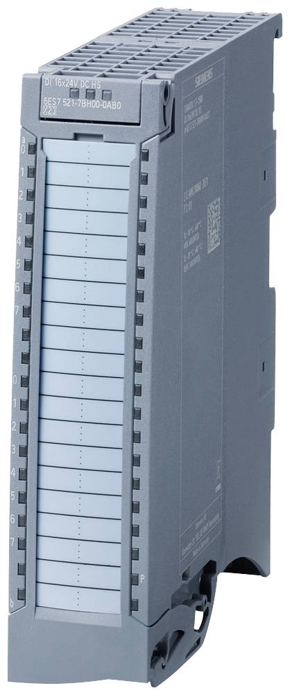 SIMATIC S7-1500, Digitaleingabemodul DI 16x24VDC HS, 16 Kanäle in Gruppen zu 8, für 24V-Geber, Sensorversorgung 24VDC, Eingangstyp 2 (IEC 61131), Eingangsverzögerung parametrierbar 0,05..20ms, taktsynchr. Betrieb bis 250µs, integr. Zählfunktion bis 20kHz, Impulsverlängerung, Flatter- überwachung, Signalinvertierung Diagnose, Prozessalarme: Frontstecker (Schraubklemmen oder Push-In) und ggf. Schirmset separat bestellen SIMATIC ET 200MP ist ein modulares, skalierbares und universell einsetzbares Peripheriesystem in IP20 und bietet die gleichen Systemvorteile wie die S7-1500. Sie erlaubt kürzeste Buszykluszeiten und schnellste Reaktionszeiten auch bei großen Mengengerüsten. Das dezentrale Peripheriesystem ist besonders einfach zu montieren, zu verdrahten und in Betrieb zu nehmen. Durch den skalierbaren Aufbau können Sie die Peripheriestation exakt auf den jeweiligen Bedarf vor Ort ausrichten. Die skalierbare Konfiguration einer ET 200MP - Station wird durch das umfassende Spektrum von Signalbaugruppen gewährleistet. Es stehen zahlreiche digitale und analoge Ein- und Ausgabebaugruppen zur Verfügung. Dies garantiert die universelle Einsatzmöglichkeit des Systems.