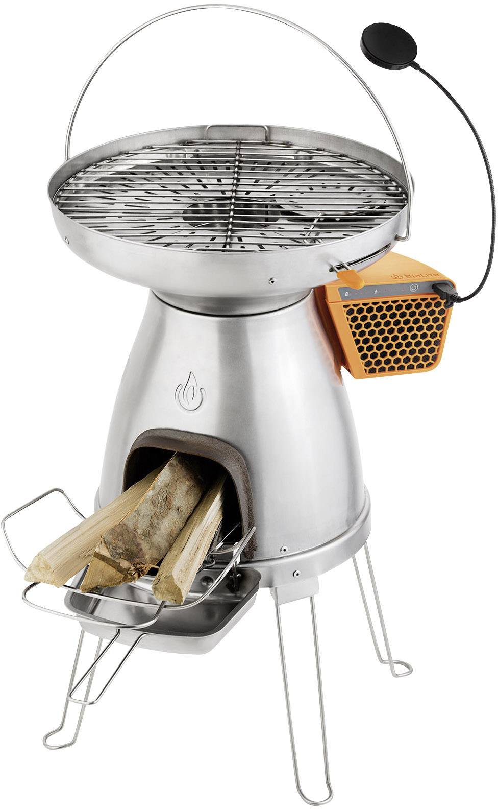 Der mit Holz betriebene BioLite BaseCamp ist eine komplette, Stromnetz unabhängige Kochmöglichkeit mit Auflademöglichkeit für elektronische Geräte. Äste und kleine Stücke brennbares Holz genügen, um Mahlzeiten zuzubereiten und gleichzeitig Geräte aufzuladen. Die clevere Alternative zu Kochern, die mit fossilen Brennstoffen betrieben werden, ist eine höhenverstellbare Kochstelle, die intelligenter brennt als jedes offene Lagerfeuer.