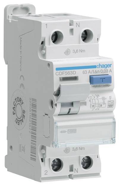 Hager CDF563D CDF563D FI-Schutzschalter F 2polig 63A 0.03A 230V