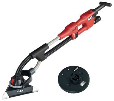 VV-Elektronik: mit Drehzahlkonstanthaltung, Sanftanlauf, Überlastungsschutz und Drehzahlvorwahl mit Stellrad Mit einzigartiger Teleskoptechnik passt sich die Vario-Giraffe® auf Ihre Bedürfnisse an, Länge verstellbar von 1330-1730 mm. Hebel für Teleskop-Arretierung öffnen, Griff ausziehen und Hebel schließen. Handgriff um 360° drehbar Nachjustierbare Klemmschraube für Teleskopstange Ergonomische Bauweise mit vielen Griff-Möglichkeiten für ein ermüdungsfreies Arbeiten. Der Motor bleibt dabei immer zwischen den Griff-Positionen und ist somit perfekt ausbalanciert. Ausgestattet mit Rundschleiferkopf, dieser läßt sich mit einem einfachen Klick anbringen und entfernen Schleifteller mit Klettbelag Staubabsaugungs-System: mit Bürstenkranz an der Schutzhaube, flexiblem Saugschlauch vom Schleiferkopf zum Führungsrohr. Am hinteren Ende des Führungsrohrs Anschlussmöglichkeit für die FLEX Sicherheitssauger Der Bürstenkranz ist gefedert gelagert. Dadurch passt sich der Rundschleiferkopf allen Unebenheiten perfekt an. Das ermöglicht ein gefühlvolles Aufsetzen und verhindert zudem den Staubaustritt Die effektive Absaugung zwischen Bürstenkranz und Schleifteller (rund) sowie über die 10 Loch-Absaugung verhindert das schnelle Zusetzen des Schleifmittels und ermöglicht ein staubfreies und gesundes Arbeiten Die kardanische Lagerung des Schleiferkopfes passt sich jeder Neigung und jedem Winkel an