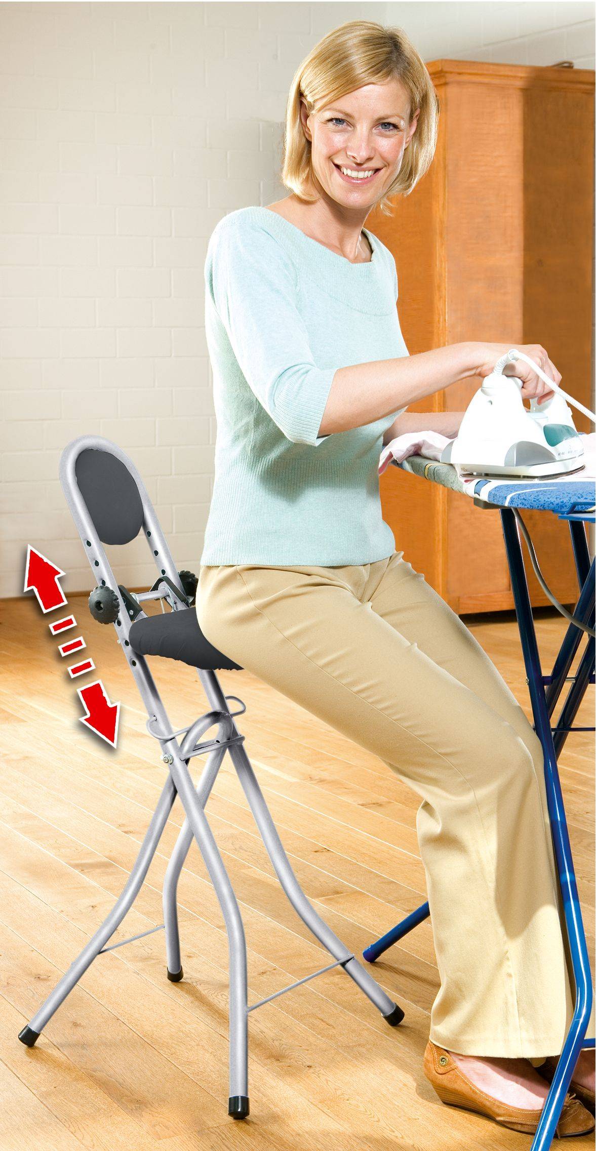 Die praktische Stehhilfe in modernem Silber-Anthrazit erleichtert zeitintensive Arbeiten im Stehen, wie z.B. Bügeln oder Kochen. Auch im Badezimmer erleichtert der Stuhl das Schminken oder Rasieren. Der Stehsitz lässt sich höhenverstellbar auf unterschiedliche Körpergrößen anpassen (Höhe von 58-66 cm). Die komfortable Sitz und Rückenlehne sind angenehm gepolstert. Der Sitzbezug selbst ist mit einem praktischen WENKO-Clip versehen und zum Waschen abnehmbar. Die integrierte Feststellvorrichtung und die massiven Stahlrohre der TÜV/GS geprüften Stehhilfe sorgen für einen sicheren Stand. Die Sitzhilfe verfügt über eine Belastbarkeit von bis zu 100 kg.