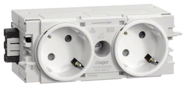 Steckdose 2-fach 45° mit Wago Steck-/Klemmtechnik C-Profil in verkehrsweiß. Kanalsteckdose 2-fach mit erhöhtem Berührungsschutz, Steckdosentopf 45 Grad, vorverdrahtet, mit Schnellbefestigung für C-Profil Geräteeinbau, anreihbar durch 3-poliges Steckverbindersystem. Leitungsanschluss über Steckklemmen 1,5 - 2,5 mm² oder über verpolungssicheres Steckverbindersystem.