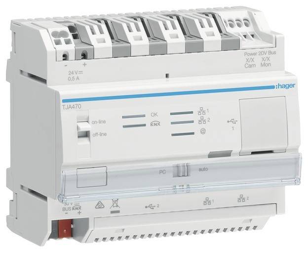 domovea expert mit easy, IoT und Access Gate. domovea expert mit easy, IoT und Access Gate ist ein KNX/EIB Server für den Verteilereinbau und beinhaltet ein Konfigurationsmodul für den easy-Modus oder die Möglichkeit des Imports eines ETS Projektes. Weiterhin einen integrierten IOT Controller mit verschiedenen Skills, die Elcom 2-Draht Türkommunikation Access und die domovea Konfigurations-Software sowie eine Client Software zur Visualisierung mit unterschiedlichen Profilen. Die Oberfläche der Visualisierung besteht aus anwenderfreundlichen, vorkonfigurierten und intuitiv bedienbaren Elementen zur Darstellung und Steuerung einer KNX gestützten Gebäudeautomation. Die Inbetriebnahme und Programmierung erfolgt über ein Konfigurationstool unter Nutzung der eingelesenen Daten aus dem ETS- (.esf oder .knxproj Datei) oder easy Projekt. Zum Steuern, Visualisieren und mit automatischen Zentralfunktionen von z.B. Jalousien, Beleuchtungen, Heizung, Lüftung, Alarmanlage, Sensorik, IP-Kameras (50) und Energieverbräuche. IP-Kameras können über den ONVIF-Standard eingelernt werden. Energieverbräuche können grafisch und temporär mit Referenzwerte dargestellt werden. Die Stellgröße für 10 Heizkreise kann durch 10 integrierte Regler generiert werden. Verschiedene Sequenzen, einfache lineare Abfolgen können direkt vom Endanwender angelegt und aktiviert oder deaktiviert werden. Zusätzlich können komplexe Sequenzen und Logiken nur durch den Elektrohandwerker angelegt werden. Ereignisgesteuert können Nachrichten wie Push-Mitteilung oder E-Mails versandt und Funktionen aufgerufen werden. Durch die Funktionalität von IoT kann bspw. die Sprachsteuerung, Multiroom Sound-Systeme, Lichtsysteme oder Cloud-Dienste eingebunden werden. Der Zugriff auf domovea erfolgt sowohl von zu Hause, als auch von unterwegs. Mit der integrierten ETS-Programmierschnittstelle kann die ETS-Programmierung lokal oder per Fernzugriff erfolgen. Ebenfalls ist eine Fernwartung des Servers für autorisierbar durch den End