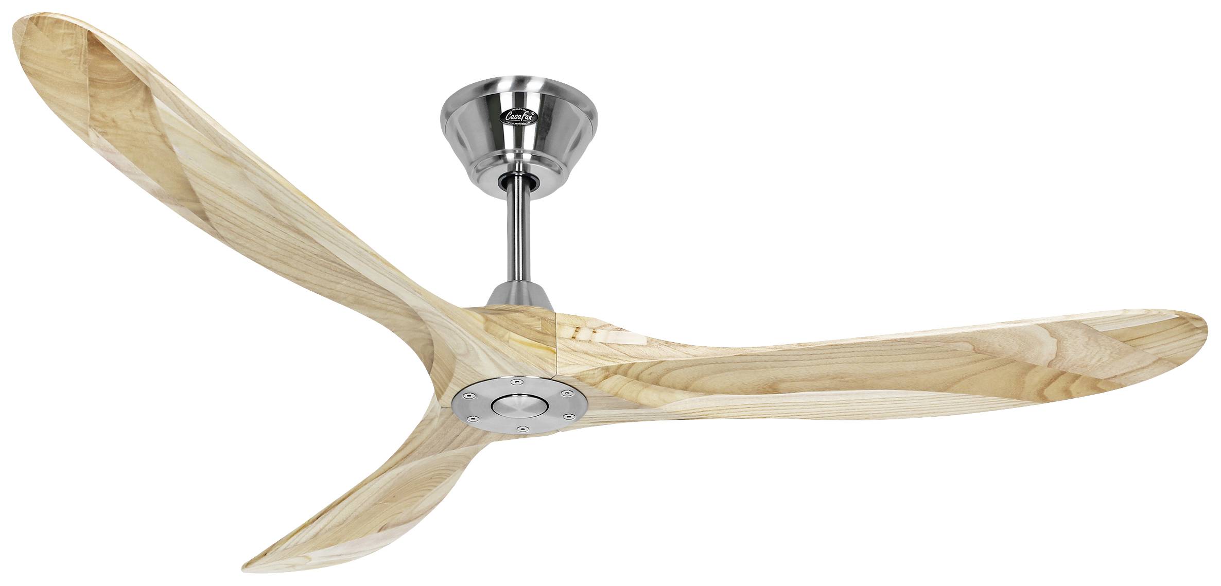 Der CasaFan Deckenventilator Eco Genuino 152 besticht durch seine klassische Propellerform mit seinen 3 handgearbeiteten Massivholzflügeln. Neben seiner Funktion als energiesparender und leistungsstarker Deckenventilator ist er ein Einrichtungshighlight für jeden Raum. Die Gehäuseflächen schließen bündig mit den Flügeln aus gefrästem Massivholz (FSC zertifiziert) ab. Das Holzfinish der Flügel unterstreicht das edle Design dieses außergewöhnlichen Deckenventilators. Die hochwertige technische Ausführung mit einem in den Flügeln verborgenem, energiesparenden EC/DC-Motor in Verbindung mit einer 6 stufigen Fernbedienung, die auch Vor- und Rückwärtslauf steuert, sorgt für ein hohe klimatische Behaglichkeit. Erfrischende Luftbewegung im Sommer sowie die zugfrei Wärmeverteilung im Winter in Räumen von 20 bis 35 m². Selbst auf höchter Stufe ist der Eco Genuino 152 mit einer Schallleistung von 40,6 dB(A) kaum wahrnehmbar.