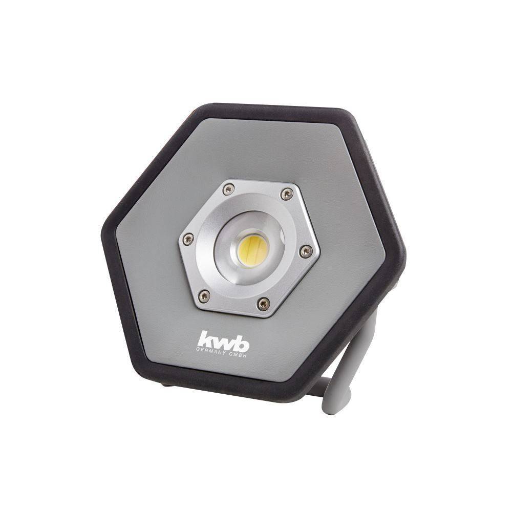 Der sechseckige kwb Flächenstrahler, mit schwer entflammbarem Gehäusematerial, ermöglicht mobiles Arbeiten unter widrigsten Bedingungen. Die Leuchte ist nicht nur extrem langlebig, sondern auch staubdicht, gegen Strahlwasser geschützt und erzeugt einen besonders großen und einheitlichen Lichtkegel. Der Lithium-Ionen-Akku ist durch integrierten Über- und Entladeschutz, sowie Temperaturüberwachung bestens geschützt. Der Strahler kann gestellt und aufgehängt werden. Ein USB-Ladekabel (ohne Netzstecker) ist bei dem Produkt enthalten.