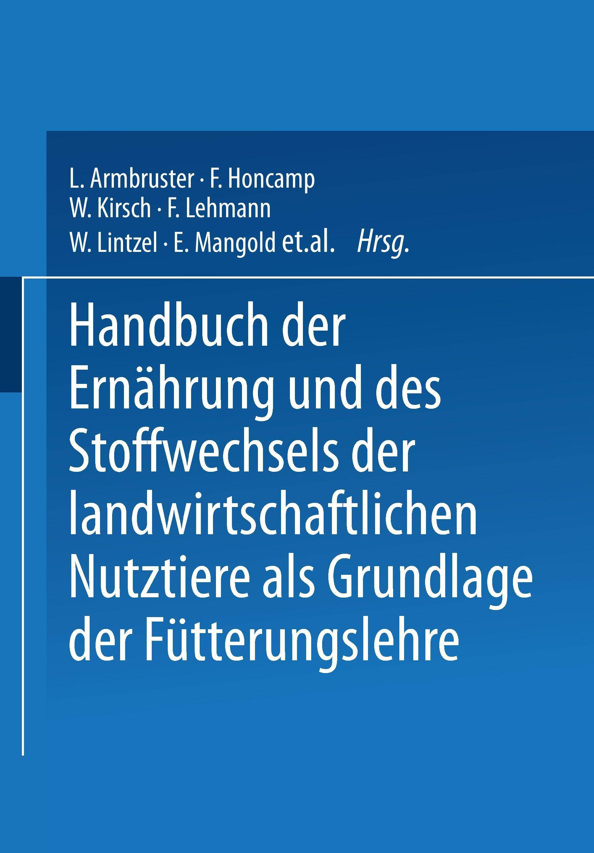 Handbuch der Ernährung und des Stoffwechsels der Landwirtschaftlichen Nutztiere als Grundlagen der Fütterungslehre Stoffwechsel der Landwirtschaftli