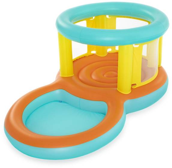 Viel Spaß im Sommer auf der Jumptopia Hüpfburg von Bestway. Dieses Spielcenter verfügt über einen angrenzenden Pool, den man mit Wasser füllen oder als Ballspielplatz nutzen kann! Geeignet für Kinder ab drei Jahren. Außerdem lässt es sich schnell und einfach aufbauen. Zuverlässiger Hüpfspaß Zur Sicherheit ist die aufblasbare Hüpfburg mit einem transparenten Netz ausgestattet. Als Elternteil können Sie sie von jedem Winkel aus leicht überwachen. Die farbenfrohe Hüpfburg ist aus robustem Vinyl gefertigt. Kann sowohl drinnen als auch draußen verwendet werden. Eigenschaften: Für den Innen- und Außenbereich geeignet Hüpfburg mit Badewanne, füllbar bis zu 70 Liter Kann auch als Ballspielplatz verwendet werden (Bälle nicht enthalten) Leichte elterliche Aufsicht dank der Netzoberfläche Spezifikationen: Farbe: orange, gelb, türkis Geschlecht: Junior Material: Kunststoff, PVC (Vinyl) Abmessungen: 239 x 142 x 102 cm (L x B x H) Geeignet für: drinnen und draußen Max. belastbares Gewicht: 55 kg Gewicht: 5,42 kg Fassungsvermögen: 70 Liter Alter: 3 bis 6 Jahre Inhalte: 1 Hüpfburg 4 Heringe 1 Reparaturpflaster