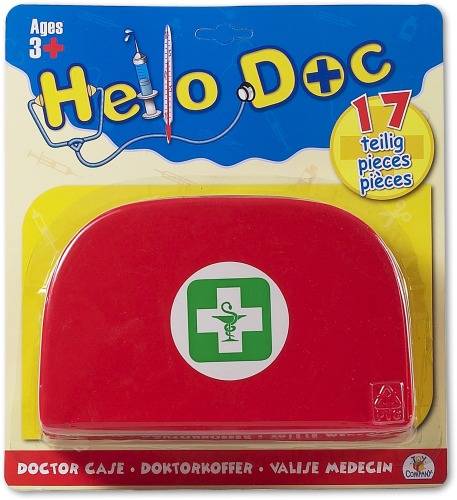Amia Arztkoffer mit 17-teiligem Zubehör. Beinhaltet alles, was ein Puppen-Doktor benötigt. Wie z.B. Stethoskop, Spritze, Fieberthermometer und weiteres zahlreiches Zubehör. Auf Blisterkarte. Kartengröße: W250xH277mm. Für Kinder ab 3 Jahren.