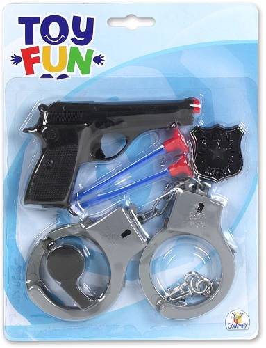 Toy Fun Agenten-Set. Inhalt: Pistole, 2 Saugnapf Pfeile, Handschellen mit Schlüssel, Agentenausweis und eine Trillerpfeife. Hier sind die kleinen Spezialagenten perfekt für den Einsatz gerüstet. Auf Blisterkarte. Kartengröße: W190xH250mm. Für Kinder ab 5 Jahren.