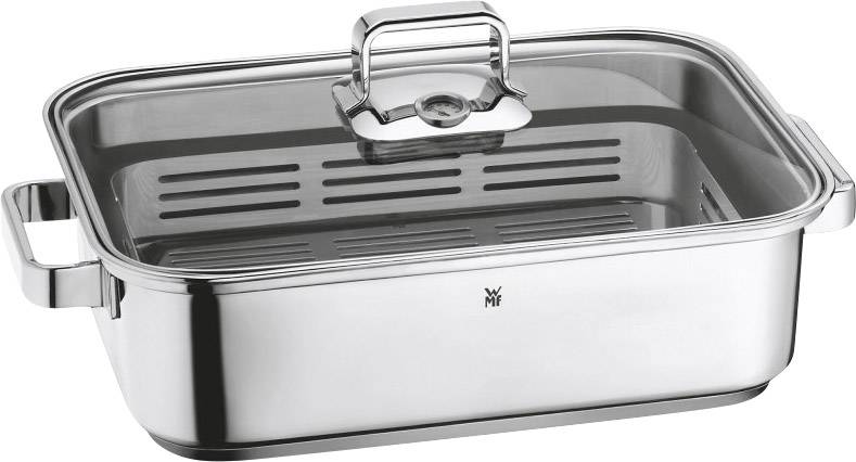 Garen im WMF Vitalis ist Schongang für Gemüse, Fisch und Fleisch. Der Dampfgarer ist ein geschlossenes System für den Herd. Im Bräter wird Flüssigkeit zum Kochen gebracht. Die Zutaten auf dem Garblech garen im aufsteigenden Dampf ohne mit Wasser in Berührung zu kommen. Das integrierte Thermometer im Glasdeckel ermöglicht die Kontrolle von außen ohne den Deckel abzuheben. Der Garvorgang wird also nicht durch unnötigen Energieverlust unterbrochen.