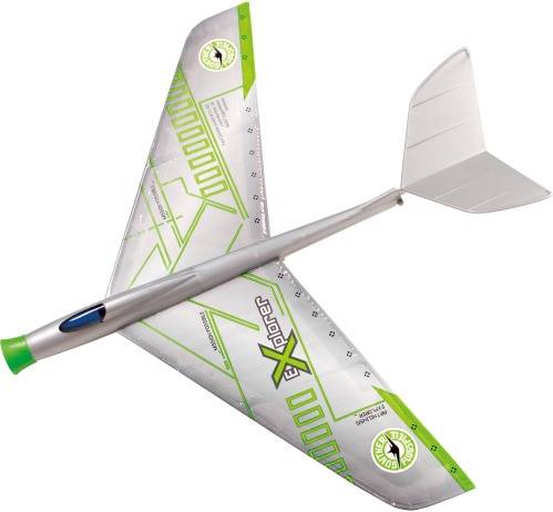 Schleudersegler EXPLORER. Mit folienbespannten Flügeln. Optimale Flugeigenschaften durch gefederte Heckflosse. Sofort startklar. Größe: 30 x 28 cm. Geeignet ab 6 Jahren.