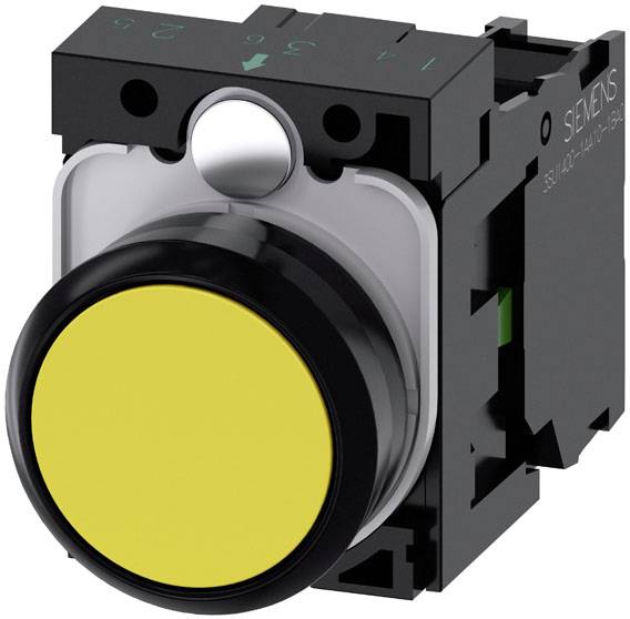 Drucktaster, 22 mm, rund, Kunststoff, gelb, Druckknopf, flach, tastend, mit Halter 1S, Schraubanschluss Drucktaster SIRIUS ACT zur Schaltung und Steuerung elektrischer Verbraucher.