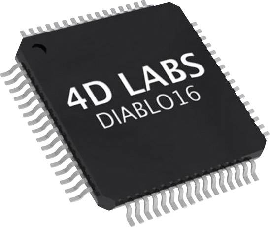 Der DIABLO16 Prozessor ist ein Neuzugang in der 4D-Prozessorproduktlinie. Er ist wesentlich leistungsfähiger und bietet mehr Flash- und RAM-Speicher, als der vergleichbare PICASO Prozessor. Der DIABLO16 ist ein eingebetteter, nutzerspezifischer 4DGL-Grafikcontroller, der speziell für die Nutzung mit den beliebten OLED- und LCD-Anzeigen entwickelt und angepasst wurde. Leistungsfähige Grafik, Text- und Bilddarstellung, Animation und weitere Funktionen, machen den DIABLO16 zur Einzelchiplösung für die gesamte Bandbreite von LCD- und OLED-Anzeige-Lösungen.