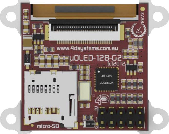 Dieses Kit enthält: ein uOLED-128-G2 Anzeige-Modul, eine 2 GB microSD-Speicherkarte, einen uUSB-PA5-Programmieradapter, ein 150 mm 5-Wege-F-F Jumperkabel, für schnelle Verbindung mit einem anderen Gerät oder einer Lochrasterplatte, einen 5-Wege-M-M-Adapter, für die Konvertierung des Jumperkabels und eine Schnellstart-Bedienungsanleitung.