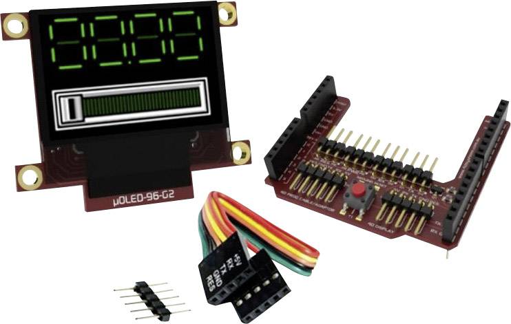 Das uOLED-96-G2-AR ist ein Arduino™ Anzeige-Modul-Paket. Es enthält eine uOLED-96-G2-0.96"-OLED-Anzeige, eine Arduino™ Adapterplatine von 4D und ein 5- Wege-Schnittstellenkabel. Das Kit passt die uOLED-96-G2-Anzeige speziell für den Anschluss mit dem Arduino™, ohne Verkabelungsprobleme, an. Das Arduino™ Anzeige-Modul-Paket erlaubt dem Arduino™nutzer die schnelle Verbindung der Arduino™-Adapterplatine mit seinem Arduino™, mittels des 5-Wege-Kabels zwischen dem Adapter und der Anzeige, um somit binnen weniger Sekunden mit dem Programmieren der neuen 4D-Systemanzeige beginnen zu können.