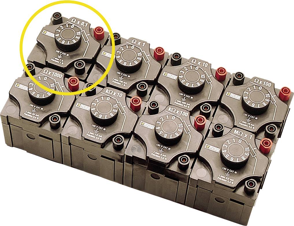Widerstanddekaden mit einer Dekade gemäß den Sicherheitsnormen.